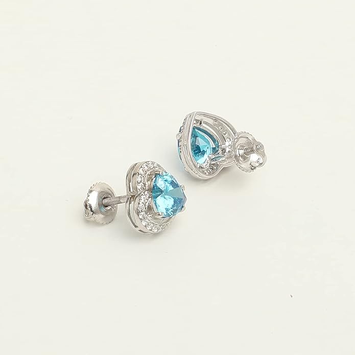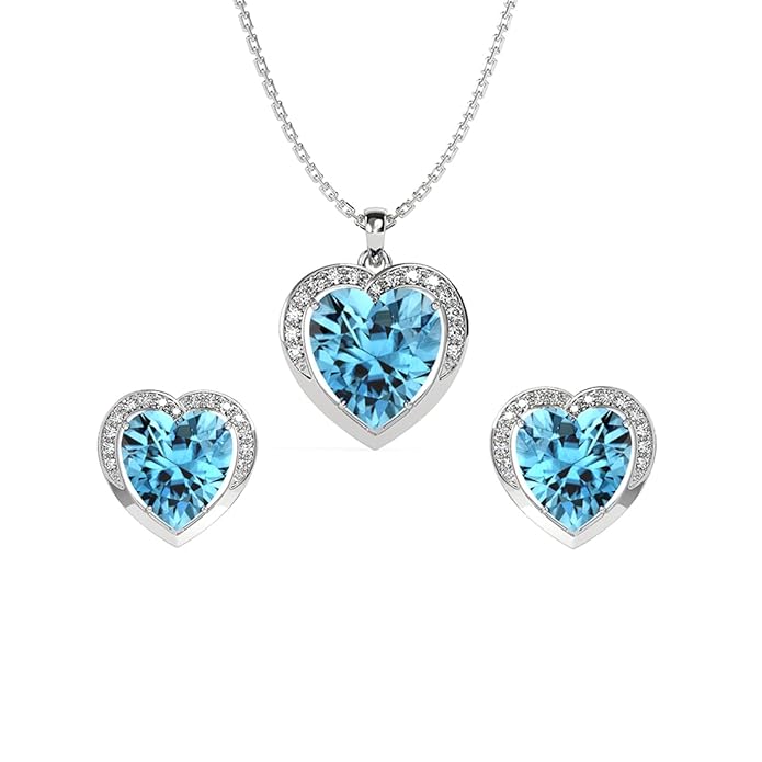 Clara 925 Sterling Silver Sky Blue Heart Pendant Earring Chain Jewellery Set | Rhodium Plated, Swiss Zirconia | Gift for Women & Girls