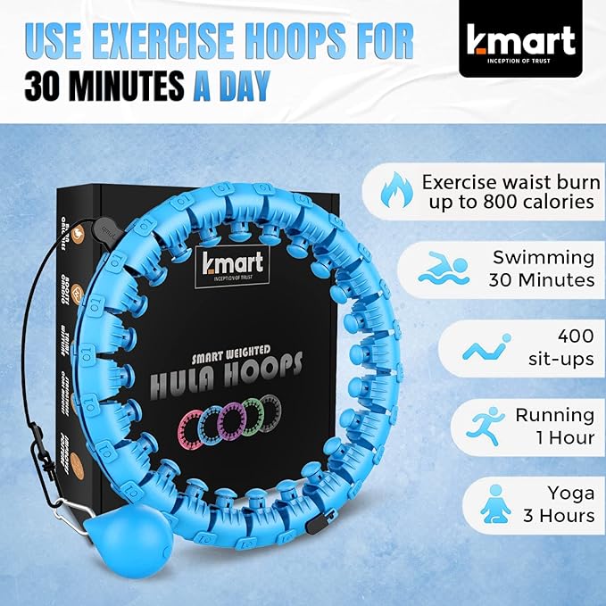 - 【Say Bye To Calories】: Quickly Burn Body Fat & Achieve An Ideal Figure. Just 30 Minutes A Day With This Smart Hula Hoop Can Trim Waist Fat, Enhance Your Waistline, Boost Flexibility And Promote Bowel Movements, Leading To A Healthy Life With This Workout Equipment.